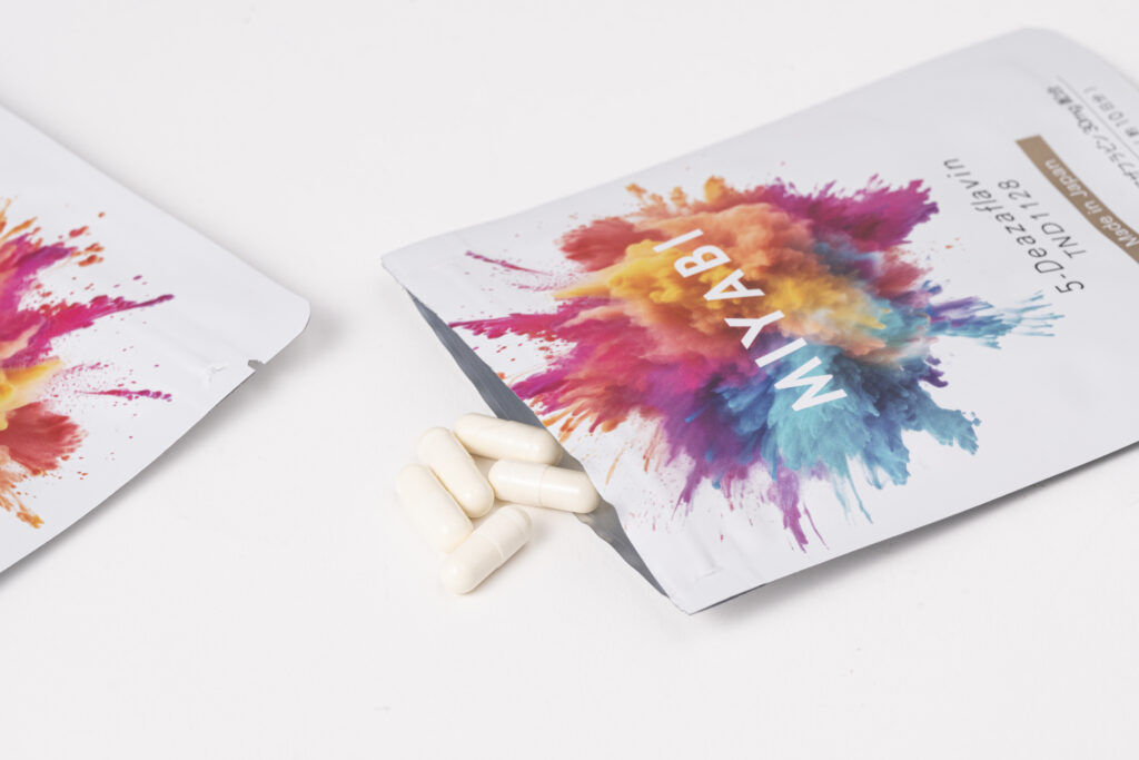 「世界最強のミトコンドリア活性剤」として知られる 5-デアザフラビンTND1128を1カプセルあたり50mg配合しています。さらに、相乗効果が期待できる乳酸菌を組み合わせることで、吸収効率を高める処方としています。