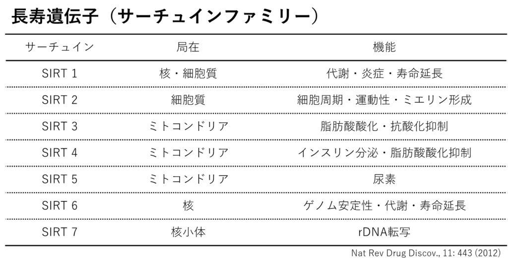 サーチュイン遺伝子の種類